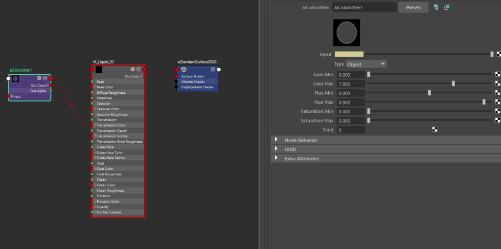 With the critique I received last class, I used the aiColorJitter node to add some hue and value variations to the liquid.